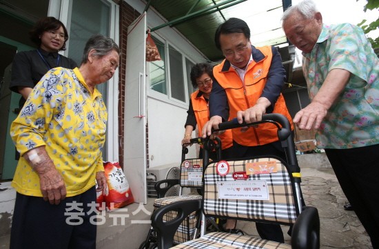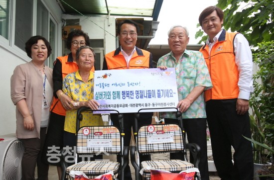 대전 동구(구청장 한현택)는 6일 구 대표 복지브랜드인 ‘천사의 손길 행복+’운동에 십시일반 모아진 후원금으로 관내 저소득 거동불편 어르신 75명에게 사랑의 실버카를 전달했다고 밝혔다.