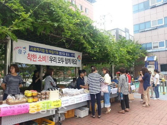 7일 ‘보리와 밀’ 등 4개 마을기업 생산제품 판매 및 판로확보 지원 대전 중구(구청장 박용갑)는 7을 구청 등나무 쉼터에서 민족 고유의 명절인 추석을 맞아 마을기업 제품 홍보와 판로확보 지원을 통한 자립기반을 제공하기 위해 ‘마을기업 제품 직거래장터’를 개최했다고 밝혔다. ▲ 마을기업 제품 직거래 장터 운영 이번 직거래장터에는 ㈜평화가 익는 부엌 ‘보리와 밀’, 안영버섯마을(주), 어남약쑥영농조합법인, 무수천하마을 영농조합법인 등 마을기업에서 생산한 우리밀쿠키, 청국장, 삼채, 약쑥 등을 판매했다. 저작권자 © 충청뉴스 무단전재 및 재배포 금지 김남숙 기자 다른기사 보기 기사가 마음에 드셨나요? 충청뉴스 좋은 기사 후원하기 1,000원 3,000원 5,000원 10,000원 30,000원 50,000원 직접입력 비회원 약관동의하기 ※ 소중한 후원금은 더 좋은 기사를 만드는데 쓰겠습니다.