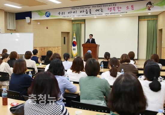 7일 세종교육연구원 1층 다목적실에서 송지희 부모력연구소장(자녀 인성교육 전문가)을 초빙해 진행된 학부모 특강에서는 ▲모든 어른이 아동의 성장 발달에 미치는 영향 ▲그중에서도 가장 가까이 있는 부모의 역할 ▲자녀의 입장에서 대화하는 법과 행동의 변화 ▲인성의 중요성 ▲자존감 형성 등을 이야기했다.