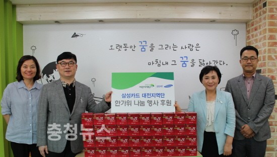 한편 삼성카드 대전지역단에서는 대전종합사회복지관과 함께 매년 떡케이크 나눔Day, 삼계탕 나눔Day, 명절선물 지원 등 다양한 사회 공헌활동을 통해 어려운 이웃에게 사랑을 전하고 있다.
