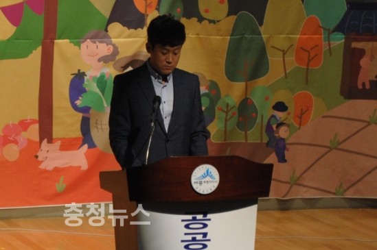 이날 선포식은 이춘희 세종시장과 최교진 교육감, 고준일 세종시의회의장, 안찬영, 이태환, 김복렬, 정준이, 박영송 의원, 이창헌 농협세종본부장, 학생 등 350여명이 참석한 가운데 공공급식추진계획 동영상시청, 학생들이 만든 로컬푸드 학교급식 UCC 시연, 비전선포 퍼포먼스 등의 순서로 진행됐다.
