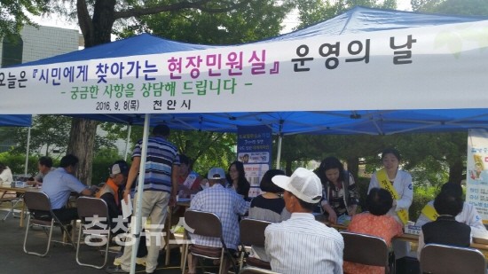 충남 천안시가 시민곁으로 한발 더 다가가는 행정서비스를 제공하기 위해 진행하고 있는 ‘찾아가는 현장민원실’ 운영이 지역주민들의 큰 관심과 참여 속에 실시됐다고 밝혔다.