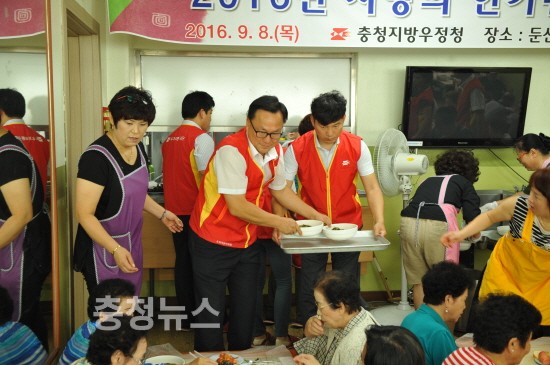 충청지방우정청(청장 이승재)은 8일 대전 둔산종합사회복지관에서 독거노인, 장애인 등을 모시고 2016년 사랑의 한가위 잔치를 실시했다고 밝혔다.