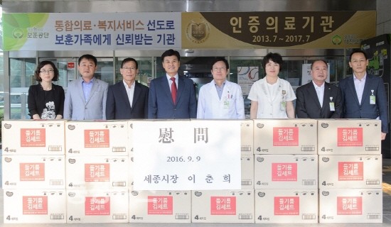 세종특별자치시(시장 이춘희)가 추석을 앞두고 지난 9일 대전시 대덕구 신탄진동에 위치한 대전보훈병원을 방문해 입원 치료 중인 국가유공자와 보훈가족을 위로했다.