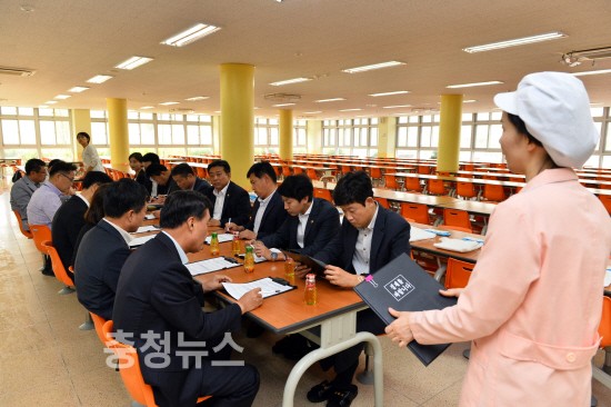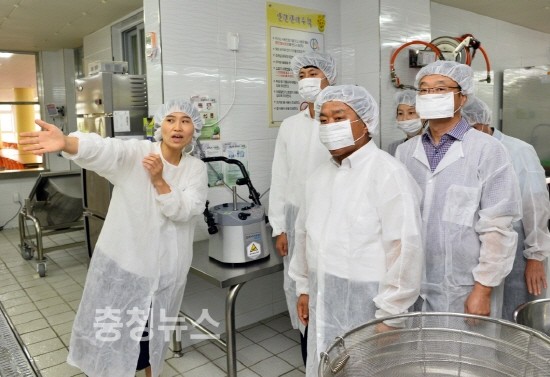 세종특별자치시의회(의장 고준일)의장단은 교육위원회(위원장 이태환)와 함께 지난 8일 아름고와 금남초를 방문하여 학교급식소 위생 사항과 안전한 학교 운동장 조성과 관련 현장을 점검하였다.