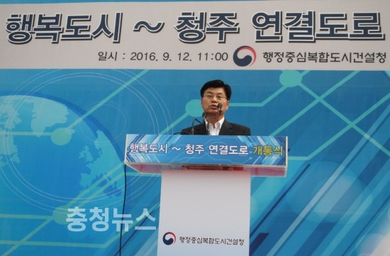 이충재 행복청장은 “청주연결도로 개통으로 행복도시와 청주시간 통행시간이 20분 이상 단축됨에 따라 두 지역 간 인적·물적교류가 활발히 진행되어 상호 발전이 기대된다”며, “앞으로도 광역도로의 지속적인 확충으로 행복도시의 발전이 세종시를 넘어 중부권 발전으로 이어질 수 있도록 노력할 것“이라고 말했다.