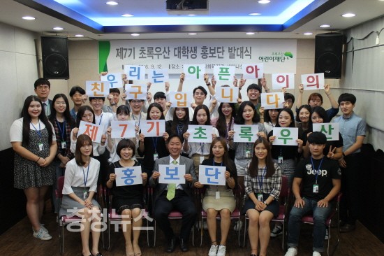 대전지역 32명의 대학생들이 국내 환아를 돕기 위해 나눔에 대한 열정을 갖고 뭉쳤다. 초록우산 어린이재단 대전지역본부(본부장 함영신)는 12일(화) 대전종합사회복지관 세미나실에서 ‘제7기 초록우산 대학생 홍보단 발대식’을 실시했다고 밝혔다.