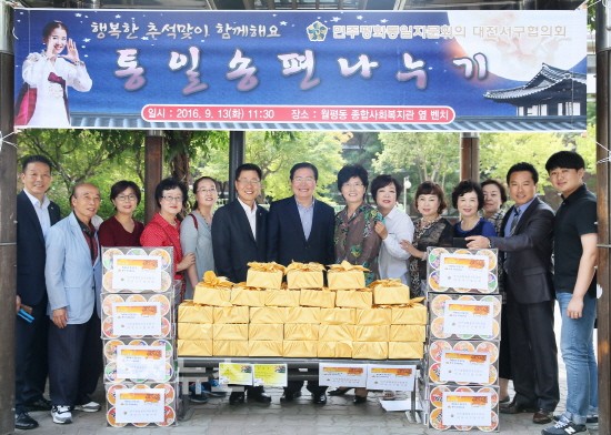 대전 서구(구청장 장종태)는 13일 월평종합사회복지관에서 민주평화통일자문회의 서구협의회(회장 김보영) 주관으로 추석맞이 ‘사랑의 송편 나누기’ 행사를 개최했다고 밝혔다.