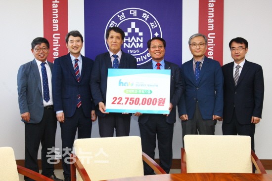 한남대 경제학과 교수들이 20일 총장실에서 학과 제자들을 위해 장학금 2275만원을 기탁했다고 밝혔다.
