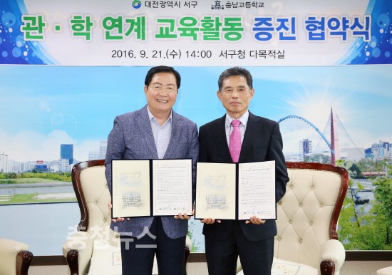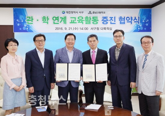 대전 서구(구청장 장종태)는 21일 구청 다목적실에서 충남고등학교와 관․학 연계 교육활동 증진을 위한 협약을 체결했다고 밝혔다.
