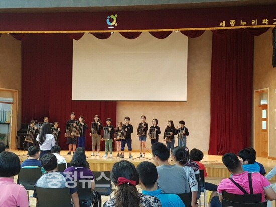 세종시 장기초등학교(교장 이민하, 이하 장기초) 예술동아리 학생 35명이 23일 세종누리학교를 방문하여 뜻깊은 예술공연을 펼쳤다고 밝혔다.
