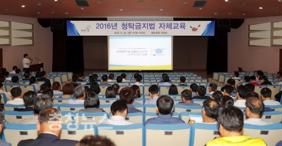 오는 28일 본격 시행되는 ‘부정청탁 및 금품 등 수수의 금지에 관한 법률(일명 김영란법, 이하 청탁금지법)’과 관련, 태안군이 공직자들을 대상으로 청탁금지법 교육을 실시했다.