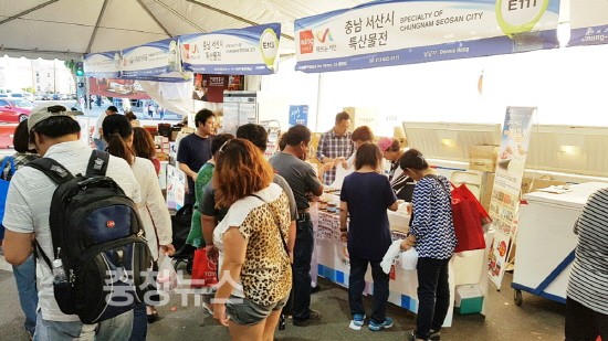 충남 서산시는 지난 22일부터 열린 LA한인축제 행사장의 서산 농특산물 판매부스는 발 디딜 틈 없이 인산인해를 이뤄 8천여만원의 판매실적을 올렸다고 밝혔다.