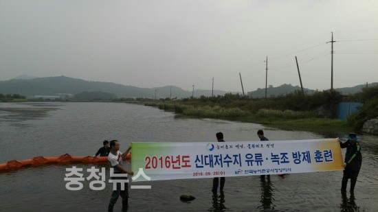 한국농어촌공사 청양지사(지사장 유상선)는 지난 28일 운곡면 신대저수지에서 수질오염 및 녹조방제 훈련을 실시했다고 29일 밝혔다..