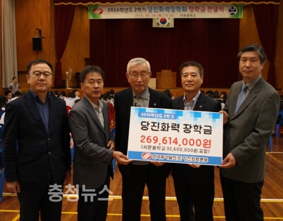 한국동서발전(주) 당진화력본부(본부장 배상규)는 29일 오전 10시 석문중학교 밀알관에서 2016년도 당진화력 장학회의 2학기 장학금 수여식을 진행했다.