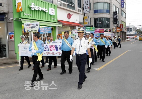 참석자들은 어깨띠를 두르고 알림판 15개와 현수막 4개를 지참해 태안읍 태안시외버스터미널에서 국민은행 앞 사거리까지 가두행진을 벌였다.