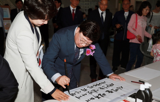 한편, 경축식에 이어 (사)대전국학원의 시민과 함께하는 한마음 개천대축제 한마당 체험행사가 3층 로비에서 500여명의 시민이 참여한 가운데 펼쳐졌다.