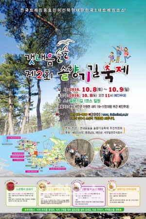 ‘바다내음, 솔내음 가득한 솔향기 속으로’라는 주제로 펼쳐지는 이번 축제는 제2회 솔향기길 축제 추진위원회(위원장 구성회)가 주관하고 태안군과 충청남도, 해양수산부가 후원한다.