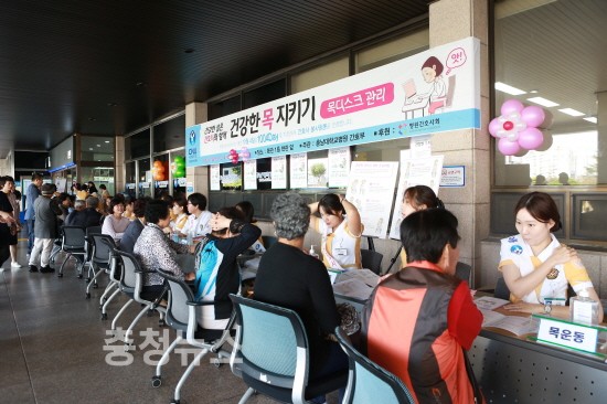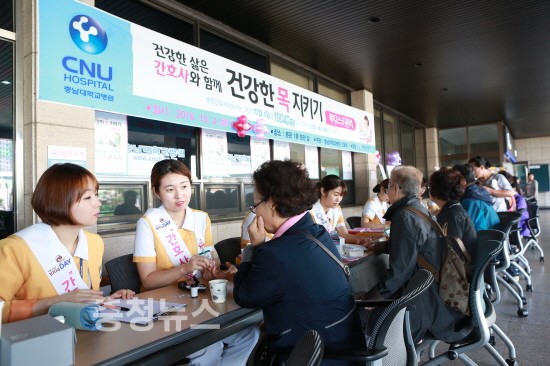 충남대학교병원(원장 김봉옥)은 10월 4일(화), 병원간호사회에서 정한 천사데이를 맞아 최근 꾸준히 증가하는 목 디스크 질환에 대한 예방과 관리를 위해 건강한 삶은 간호사와 함께 ‘건강한 목 지키기’캠페인을 전개하였다고 밝혔다.