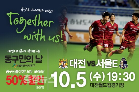 대전 동구(구청장 한현택)는 5일 대전월드컵경기장에서 K리그 챌린지 대전시티즌과 서울이랜드FC와의 홈경기를 다채로운 행사들과 함께 ‘동구민의 날’ 행사로 열어 성공적으로 마무리했다고 밝혔다.