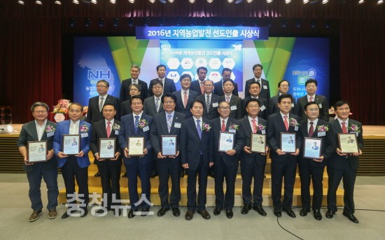 충남 구본영 천안시장이 농협중앙회가 지역 농업발전에 기여한 인사를 대상으로 수여하는 ‘2016 지역농업발전 선도인像을 수상하는 영예를 안았다고 밝혔다.