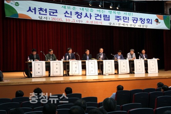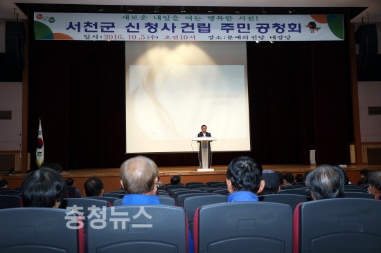 충남 서천군(군수 노박래)은 5일 문예의전당 대강당에서 서천군 신청사 건립에 대한 군민의 다양한 의견을 수렴하기 위한 주민공청회를 개최했다고 밝혔다.
