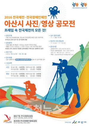 충남 아산시(시장 복기왕)는 제97회 전국체육대회 및 제36회 전국장애인체육대회(이하 양대체전) 성공개최를 기념하기 위해 사진‧영상 공모전을 개최한다고 밝혔다.