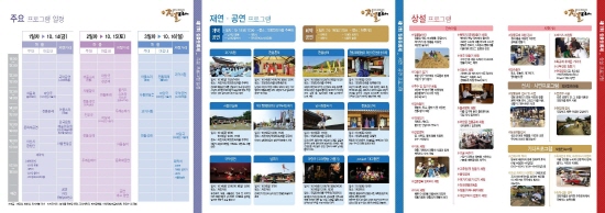 △10. 15(토) 외암마을 주무대/ 어울소리(정통), 사물놀이, 전통국악(타악난타), 천무극, 전통상례, 두레논메기/ △10. 15(토) 외암마을/ 마당극, 전통성년례, 전통혼례 / △10. 15(토) 저잣거리/ 올키즈스트라(청소년오케스트라), 두레논메기, 사물놀이, 문화재공연, 야간공연(대고향연)/ △10. 16(일) 외암마을주무대/ 어울소리(퓨전), 사물판놀음, 과거시험, 전통상례 △10. 16(일) 외암마을/전통제례(불천위), 마당극(꼬마장승가출기)/ △10. 16(일) 저잣거리-과거시험, 국악공연(소리와무용), 마당극(꼬마장승가출기)】