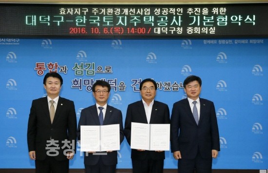 대전 대덕구(구청장 박수범)는 6일 구청 중회의실에서 읍내동 효자지구 주거환경개선사업과 관련해 한국토지주택공사(LH)와 업무기본협약을 체결했다고 밝혔다.