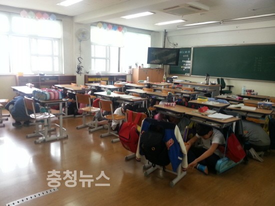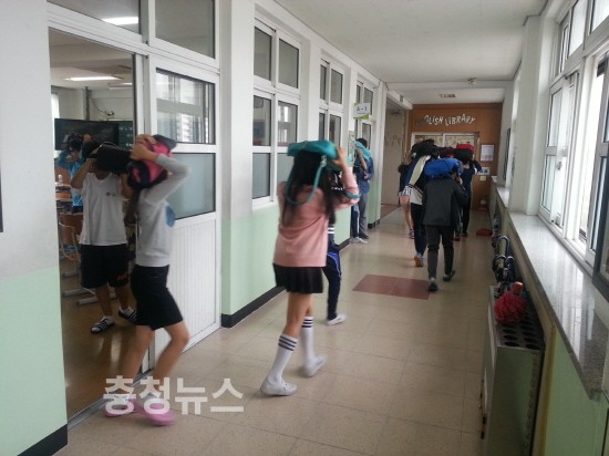 오전 11시 지진 교육을 실시하고, 경보사이렌이 1분 간 울리면 학생들은 자세를 낮추고 머리를 보호하며 책상 밑으로 들어가 몸을 고정시키는 실내 대피(엎드려→가려→붙잡아) 훈련을 진행한 뒤, 실외 대피 훈련을 가졌다.