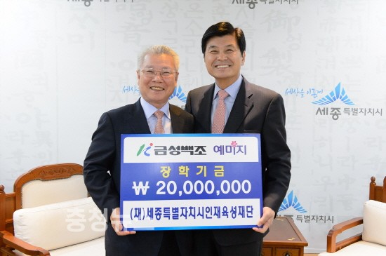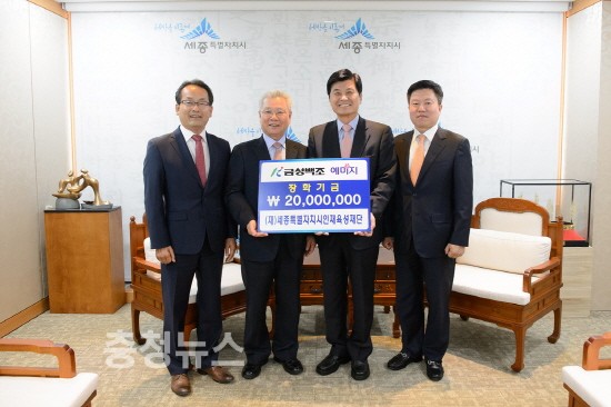 장학금은 세종시인재육성재단에 지정 기탁됐으며, 지역 인재육성과 소외계층 학생 지원 등에 쓰일 예정이다.