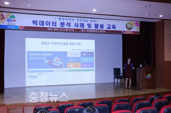 충남 청양군(군수 이석화)은 11일 청양문예회관에서 공직자 200여명을 대상으로 데이터 기반의 과학적 행정 구현을 위한 정부3.0 빅데이터 분석사례 및 활용 교육을 실시했다고 밝혔다