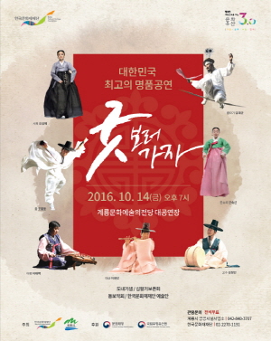 한국문화재재단과 계룡시가 공동 주관하며 문화재청과 국립무형유산원에서 후원하는 이번공연에는 여는마당, 풍류마당, 신명마당의 세 마당으로 구성되어 풍성한 볼거리와 들을거리가 준비되어 있다.