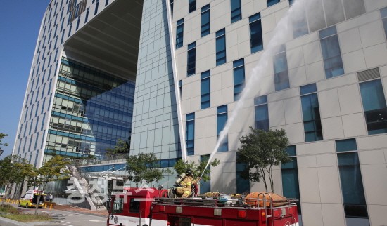 12일, 동구청 1층 야외주차장서 실전 방불케 하는 소방훈련 실시