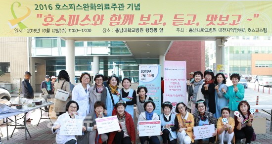 충남대학교병원(원장 김봉옥) 대전지역암센터는 10월 12일‘호스피스와 함께 보고, 듣고, 맛보고’라는 주제로 호스피스완화의료 캠페인을 진행하였다고 밝혔다.