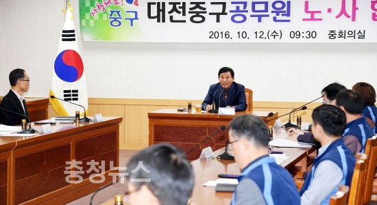 대전 중구(구청장 박용갑)는 12일 구청 중회의실에서 상생협력의 노사관계를 구축하기 위해 중구공무원노동조합과 노사협의회를 개최했다고 밝혔다.