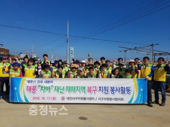 대전 서구(구청장 장종태)는 17일 지진과 태풍 ‘차바’로 피해를 본 경주시 감포 지역을 돕기 위해 피해 복구 현장을 방문하여 봉사활동을 펼쳤다고 밝혔다.