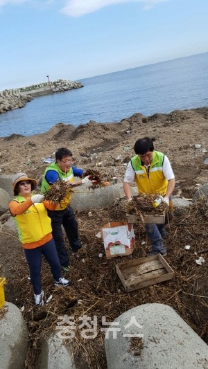 서구 자원봉사자 40명...양식장 이물질 제거 작업 등 피해 복구에 힘 보태...