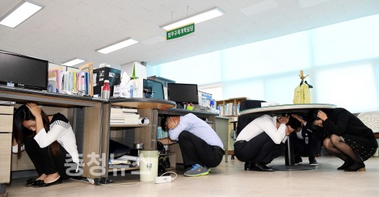 제403차 민방위의 날 맞아 최근 발생한 경주 지역 지진발생 계기 대전 중구(구청장 박용갑)는 19일 구청 일원에서 제403차 민방위의 날을 맞아 최근 발생한 경주 지역 지진발생을 계기로 우리나라도 지진 안전지대가 아님에 따라 실제상황 같은 지진대피 훈련을 전개했다고 밝혔다. ▲ 지진대피 훈련모습 구청 직원들은 지진발생시 실내에서의 긴급조치 등 행동요령 교육과 함께 재난위험경보 발령과 라디오 방송에 따라 2~3분간 책상, 탁자 밑으로 몸을 피한 후, 유도요원의 안내에 따라 건물 밖으로 신속히 빠져나오는 등 지진발생에 따른 행동요령을 숙지했다. ▲ 지진대피 훈련모습 저작권자 © 충청뉴스 무단전재 및 재배포 금지 김남숙 기자 다른기사 보기 기사가 마음에 드셨나요? 충청뉴스 좋은 기사 후원하기 1,000원 3,000원 5,000원 10,000원 30,000원 50,000원 직접입력 비회원 약관동의하기 ※ 소중한 후원금은 더 좋은 기사를 만드는데 쓰겠습니다.