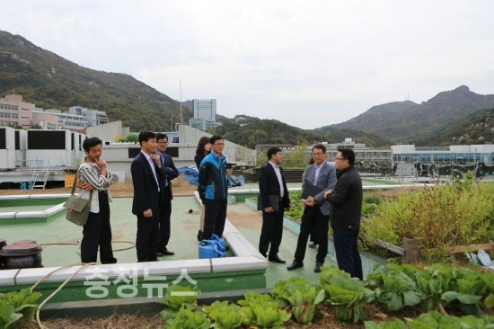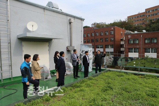 이들이 먼저 방문한 곳은 서울대학교 빗물연구센터로 이곳에는 소형·대형 빗물이용시설과 스스로 빗물을 저류하는 방식의 오목형 옥상녹화 시설이 설치되어있다.