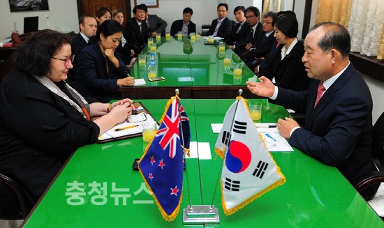 ▲ 황선봉 군수가 뉴질랜드 주한 대사관과 면담을 하고 있다. / 충청뉴스 최형순 기자