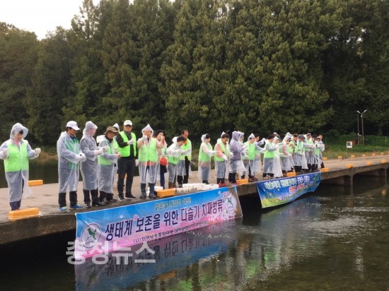 대전 서구(구청장 장종태) 지난 25일 흑석동 노루벌 일원에서, 자연보호협의회 50여 명이 참석한 가운데, 다슬기 방류행사를 개최했다고 밝혔다.