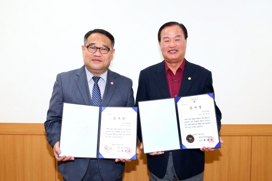 경찰의 날 맞아 대전유성경찰서로부터 감사패 받아 대전 유성구의회 민태권 의장과 송봉식 부의장이 제71주년 경찰의 날을 맞아 대전유성경찰서로부터 감사패를 전달 받았다. ▲ 유성구의회 민태권 의장ㆍ송봉식 부의장, 감사패 수상 대전유성경찰서장은 감사패를 통해 “두 의원은 평소 경찰을 이해하고 적극 협조하여 오셨으며, 특히 경찰행정 발전에 기여한 공이 크므로 이에 깊은 감사를 드린다”며 그 뜻을 밝혔다. 감사패를 받은 민태권 의장은 지역 자율방범대원으로 활동하며 치안 소외지역 해소를 위해 앞장서 왔고, 송봉식 부의장은 상대초등학교에서 교통정리 봉사활동을 하며 안전한 통학환경 조성을 위해 힘써왔다. 저작권자 © 충청뉴스 무단전재 및 재배포 금지 조홍기 기자 다른기사 보기 기사가 마음에 드셨나요? 충청뉴스 좋은 기사 후원하기 1,000원 3,000원 5,000원 10,000원 30,000원 50,000원 직접입력 비회원 약관동의하기 ※ 소중한 후원금은 더 좋은 기사를 만드는데 쓰겠습니다.