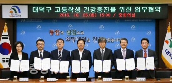 대전 대덕구(구청장 박수범)는 25일 관내 5개 고등학교, 대덕구정신건강증진센터와 고등학생 건강증진을 위한 업무 협약을 체결했다고 밝혔다.