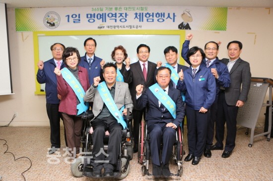 대전도시철도공사(사장 김민기)는 26일 장애인단체 대표를 시민 명예역장으로 위촉하고 역장 체험 행사를 가졌다고 밝혔다.