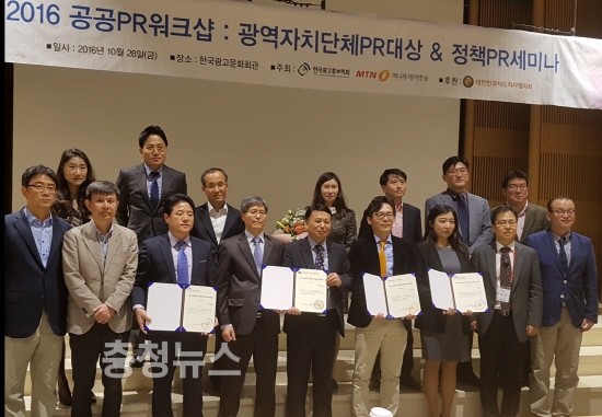 이날 광역자치단체PR대상 시상식은 한국광고홍보학회장, 대한민국시도지사협의회 국장 등 150여명이 참여하였으며, 수상작 사례발표, 정책홍보 세미나 순으로 진행되었다.
