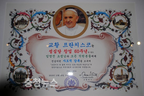 ▲ 성심당(聖心堂) 창업 60주년 기념 사진전에는 프란치스코 교황님의 흔적을 볼수 있다.