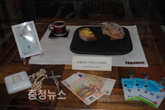 ▲ 성심당(聖心堂) 창업 60주년 기념 사진전에는 프란치스코 교황님의 식탁도 볼수 있다.