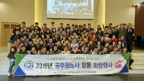 대전 서구(구청장 장종태)는 31일 천안 ‘아름다운 정원 화수목’에서 장종태 서구청장을 비롯해 노조 간부 및 조합원이 참석한 가운데 ‘2016년 공무원 노사 한마음 화합행사’를 개최했다고 밝혔다.