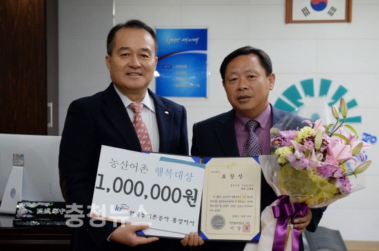 한국농어촌공사 홍성지사(지사장 김희중)는 2016년 11월 01일(월) ‘2016 농산어촌 행복대상’ 시상식을 개최하고 수상자로 선정된 홍성군청 김동표 건설교통과장에게 사장표창 및 포상금을 전달하였다고 밝혔다.